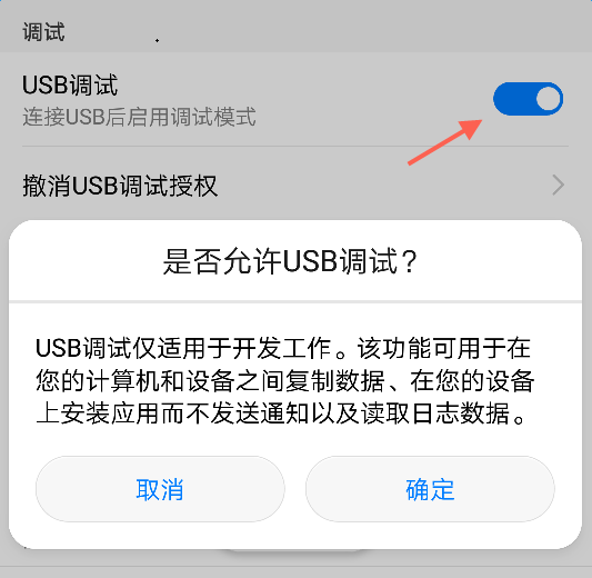 1.手机重新连上电脑,插拔下数据线,勾选USB调试