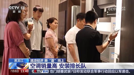 在哈尔滨市道里区的另外一家商场,空调销售同样火爆。工作人员告诉记者,空调销售走俏,空调安装师傅也忙得不可开交。平时从下单到安装最多只需要三天,但是现阶段空调安装订单已经排到了7月末。