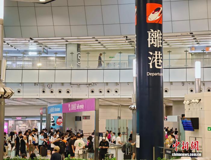 7月20日晚,香港天文台将台风“韦帕”的热带气旋警告信号下调为“三号强风信号”(俗称“三号风球”)。当天傍晚起,高铁香港西九龙站往来中国内地的列车陆续恢复运行。图为香港西九龙站内的旅客排队进站。 中新社记者 侯宇 摄